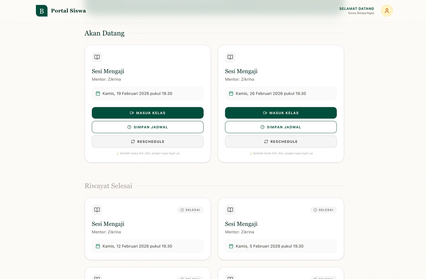 Tidak seperti bimbel biasa, kami punya platform sendiri. Pantau jadwal, history belajar, dan progress Anda kapan saja.